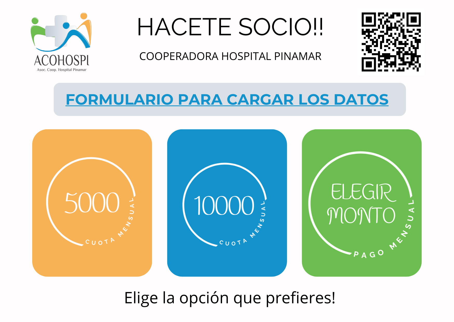 ¡Seamos solidarios juntos! 🤝 Unite a la Cooperadora del Hospital de Pinamar y forma parte de esta noble causa que busca mejorar la salud y el bienestar de nuestra comunidad. Con tu apoyo, podemos brindar más y mejores recursos para garantizar una atención médica de calidad. ¡Hacé la diferencia hoy mismo!